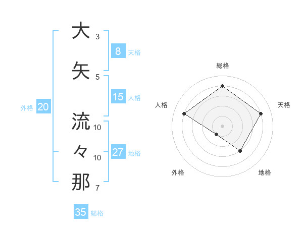 大矢 流々那さんを姓名の画数から五運を鑑定