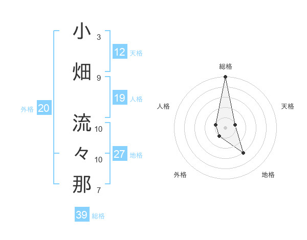 小畑 流々那さんの総格は39画の5点!