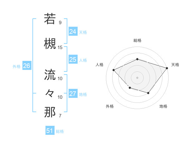 若槻 流々那さんの総格は51画の3点!