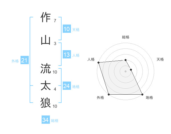 作山 流太狼さんを姓名の画数から五運を鑑定