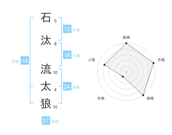 石汰 流太狼さんを姓名の画数から五運を鑑定