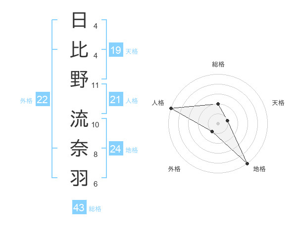 日比野 流奈羽さんを姓名の画数から五運を鑑定