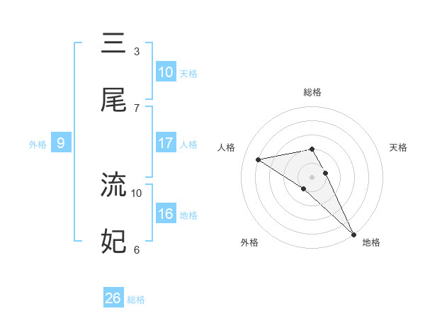 三尾 流妃さんを姓名の画数から五運を鑑定