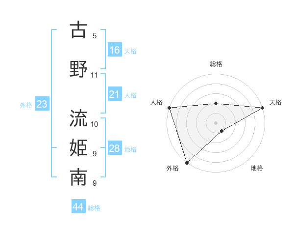 古野 流姫南さんを姓名の画数から五運を鑑定