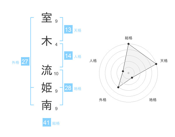 室木 流姫南さんの天格は13画の5点!