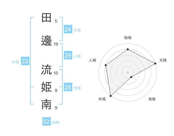 田邊 流姫南さんを姓名の画数から五運を鑑定