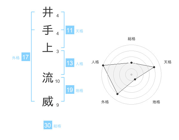 井手上 流威さんの天格は11画の4点!