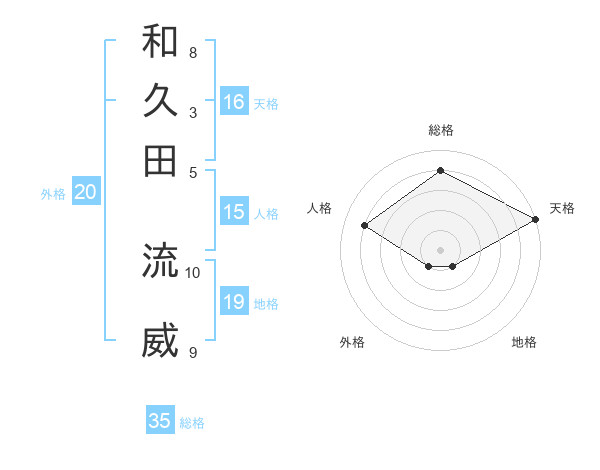 和久田 流威さんの天格は16画の5点!
