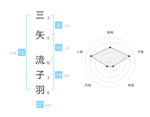 三矢 流子羽さんを姓名の画数から五運を鑑定