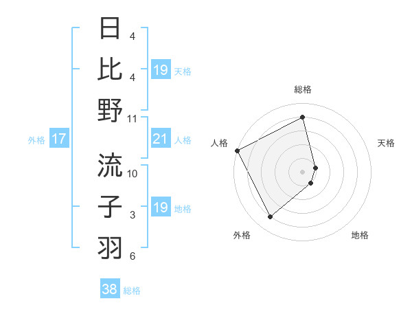 日比野 流子羽さんを姓名の画数から五運を鑑定