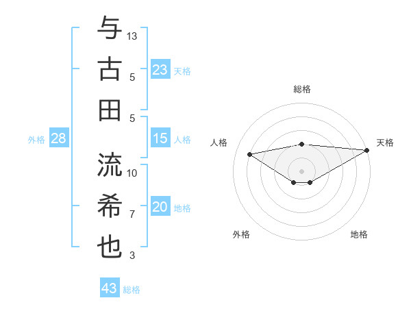 与古田 流希也さんを姓名の画数から五運を鑑定