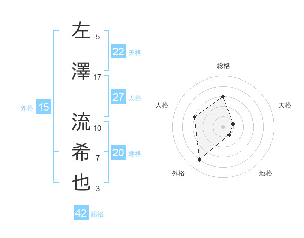 左澤 流希也さんを姓名の画数から五運を鑑定