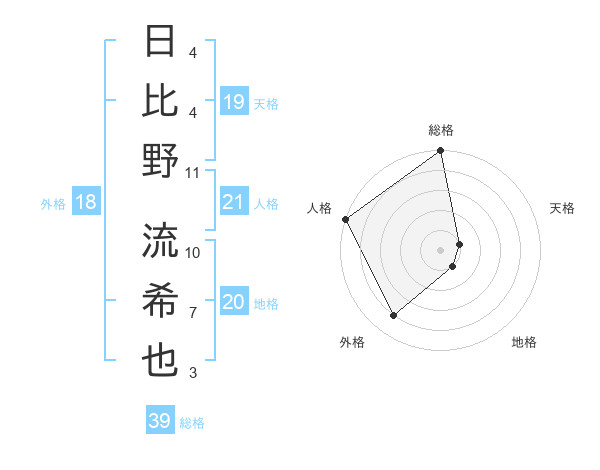 日比野 流希也さんを姓名の画数から五運を鑑定