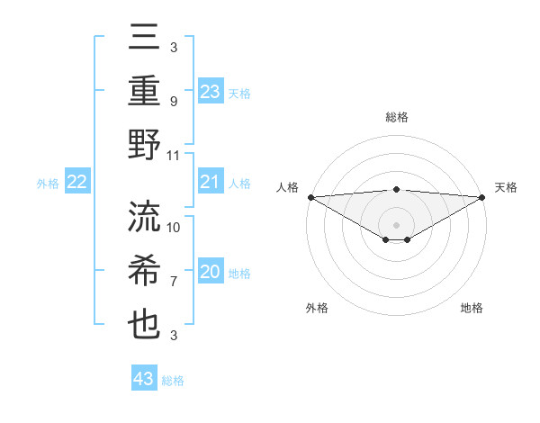 三重野 流希也さんを姓名の画数から五運を鑑定