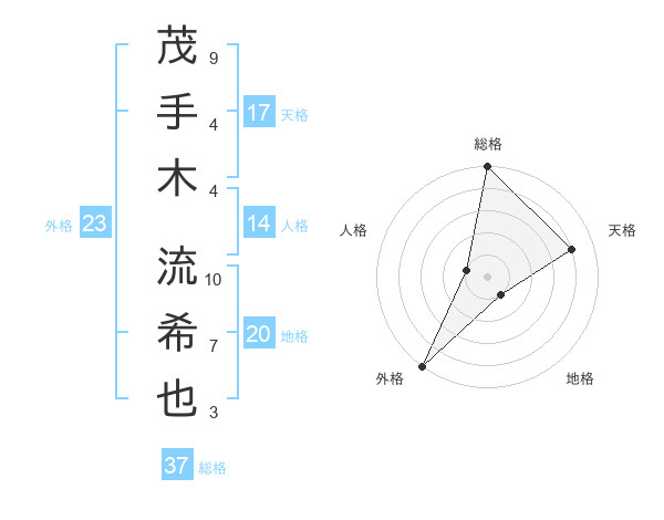 茂手木 流希也さんを姓名の画数から五運を鑑定