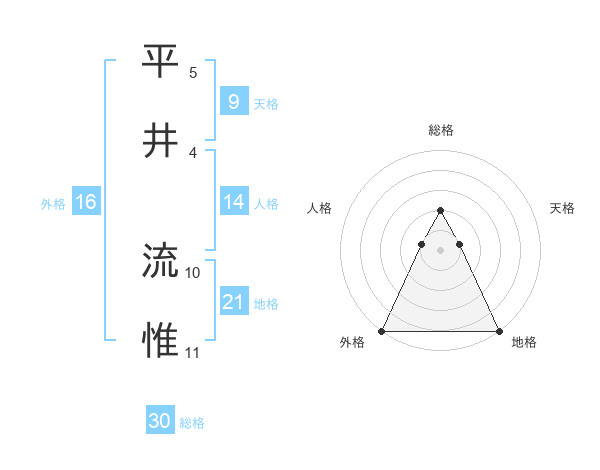 平井 流惟さんの地格は21画の5点!