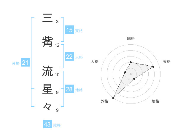 三觜 流星々さんの外格は21画の5点!