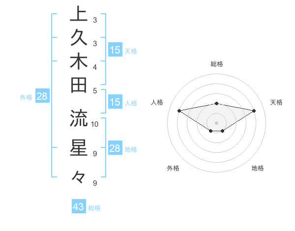 上久木田 流星々さんを姓名の画数から五運を鑑定