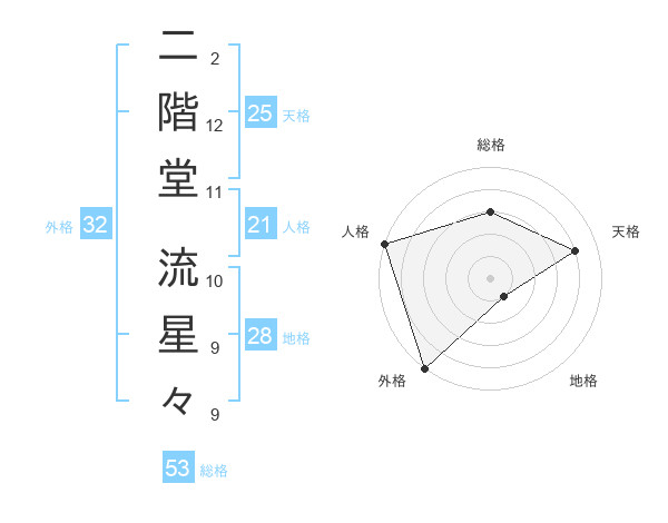 二階堂 流星々さんを姓名の画数から五運を鑑定