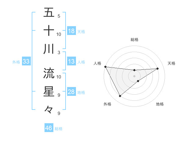 五十川 流星々さんの天格は18画の4点!