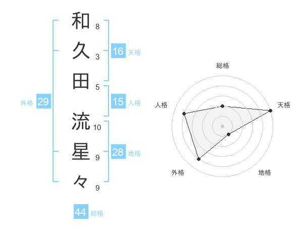 和久田 流星々さんの総格は44画の2点!