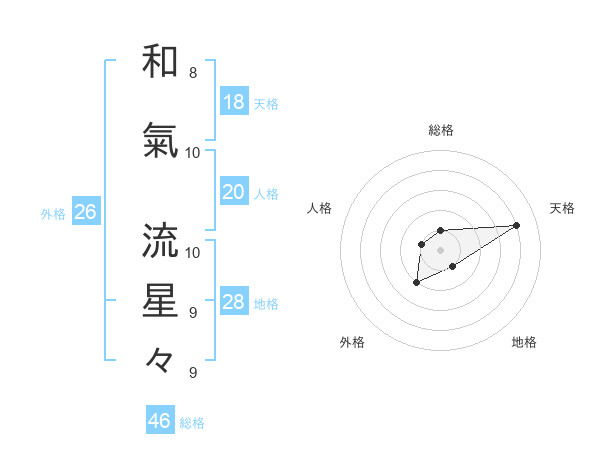 和氣 流星々さんを姓名の画数から五運を鑑定