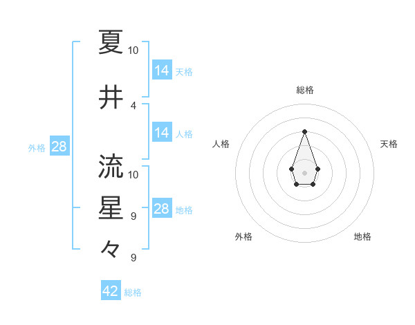 夏井 流星々さんを姓名の画数から五運を鑑定