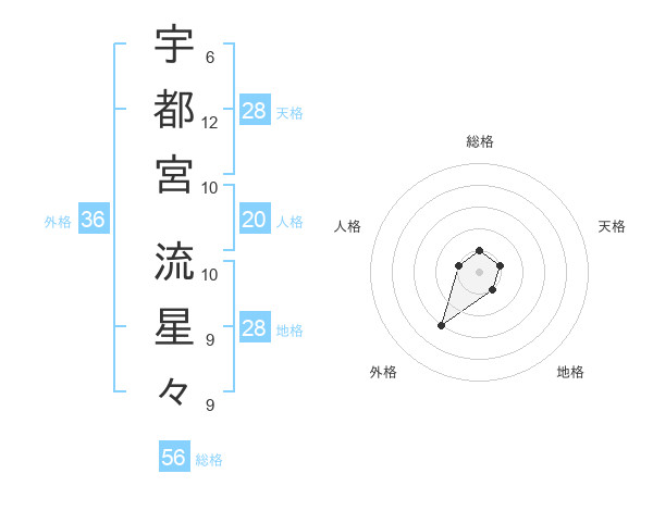 宇都宮 流星々さんの総格は56画の1点!