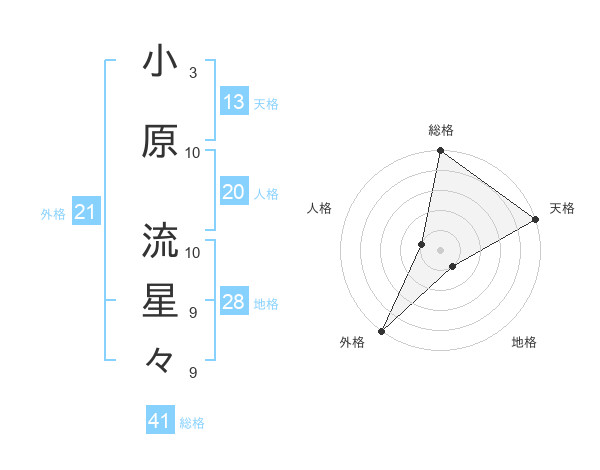 小原 流星々さんの天格は13画の5点!