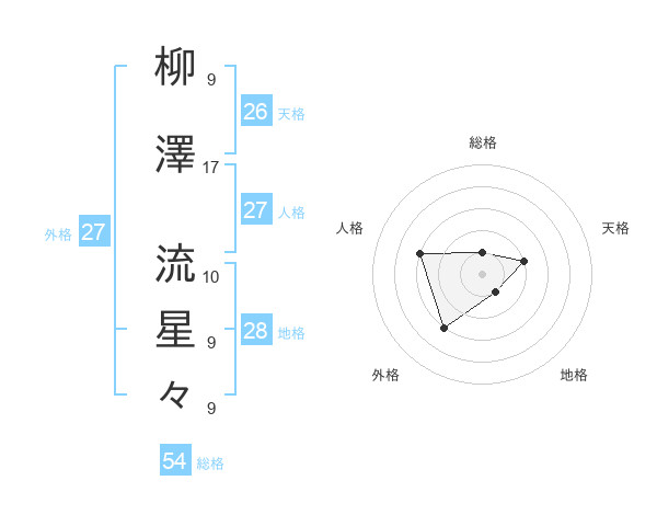 柳澤 流星々さんを姓名の画数から五運を鑑定
