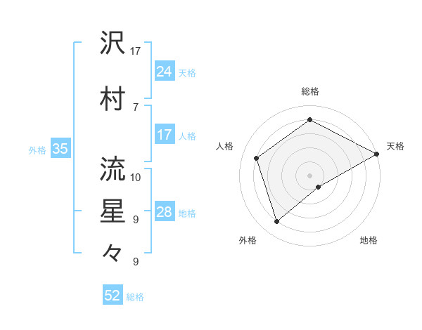 沢村 流星々さんを姓名の画数から五運を鑑定