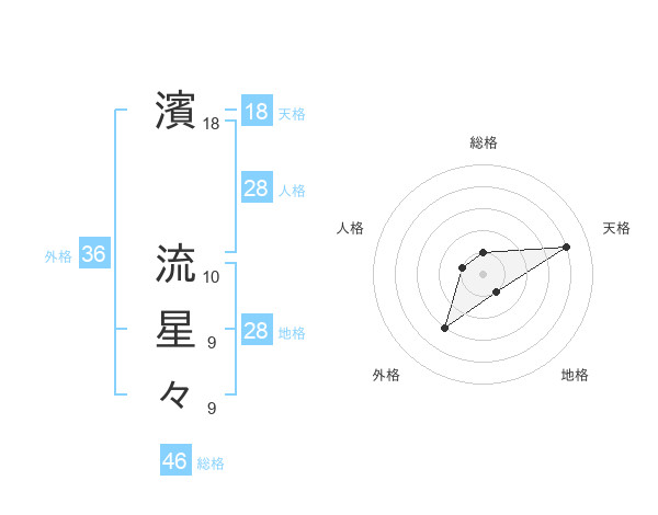 濱 流星々さんの天格は18画の4点!