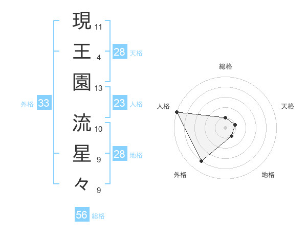 現王園 流星々さんを姓名の画数から五運を鑑定