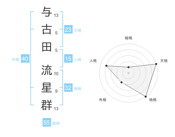 与古田 流星群さんの総格は55画の1点!