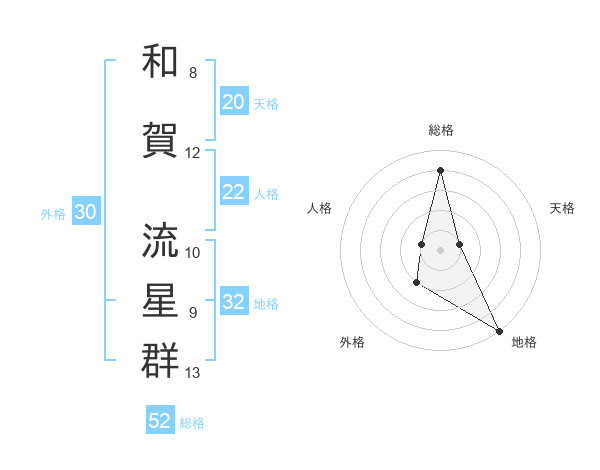 和賀 流星群さんを姓名の画数から五運を鑑定