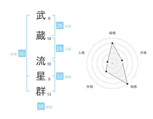 武蔵 流星群さんを姓名の画数から五運を鑑定