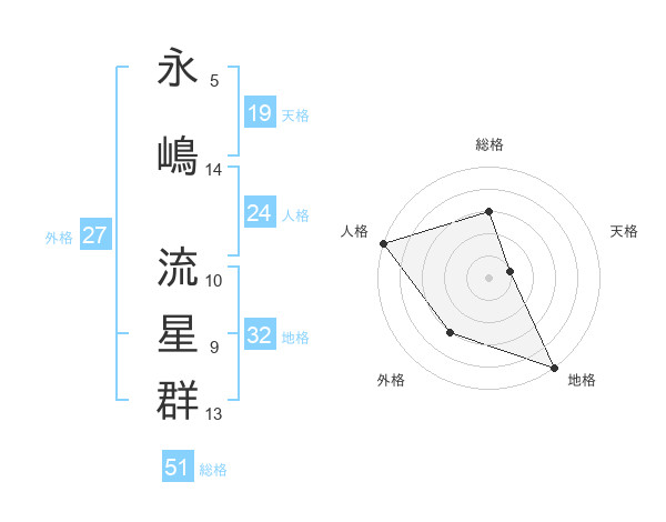 永嶋 流星群さんを姓名の画数から五運を鑑定