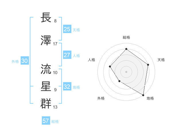 長澤 流星群さんを姓名の画数から五運を鑑定