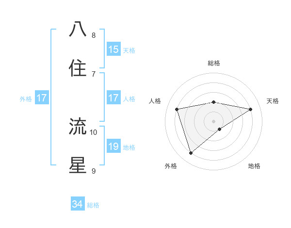 八住 流星さんの外格は17画の4点!