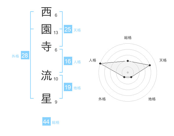 西園寺 流星さんの総格は44画の2点!