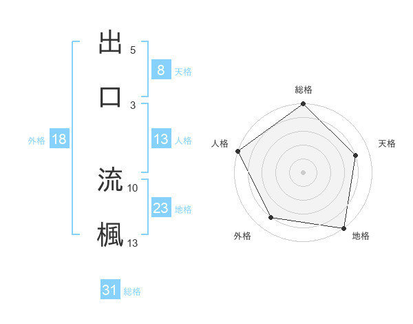 出口 流楓さんの総格は31画の5点!