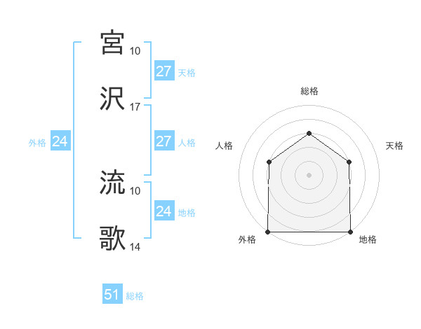 宮沢 流歌さんを姓名の画数から五運を鑑定