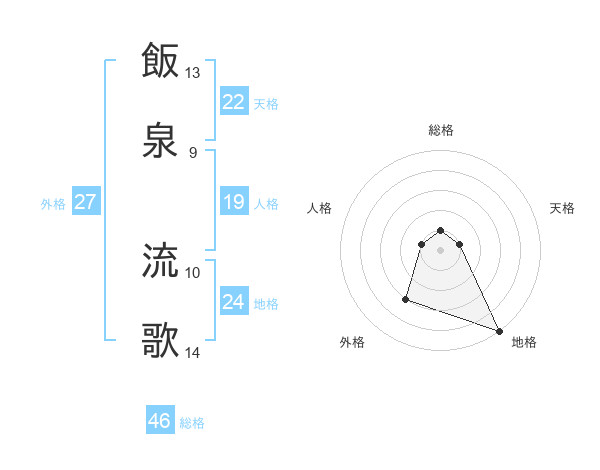 飯泉 流歌さんを姓名の画数から五運を鑑定