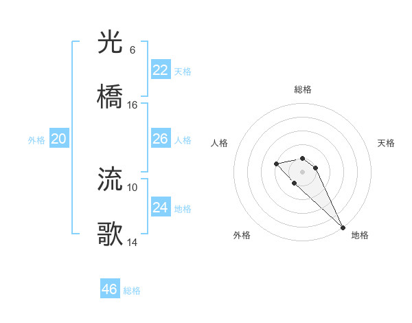 光橋 流歌さんの総格は46画の1点!