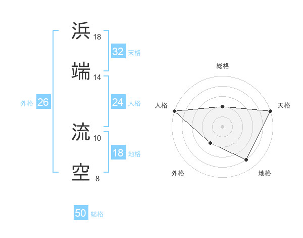 浜端 流空さんの総格は50画の2点!