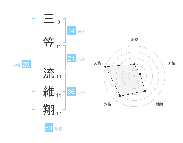 三笠 流維翔さんを姓名の画数から五運を鑑定