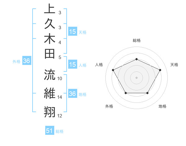 上久木田 流維翔さんを姓名の画数から五運を鑑定