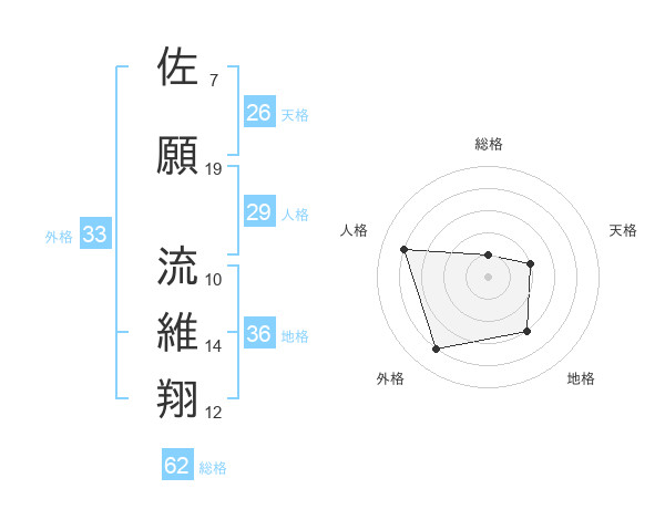 佐願 流維翔さんを姓名の画数から五運を鑑定