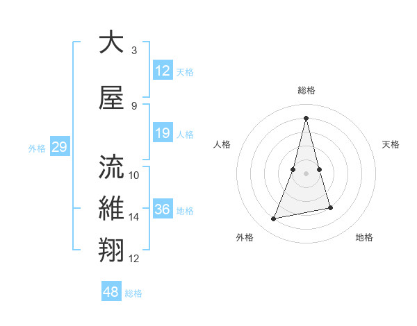 大屋 流維翔さんの総格は48画の4点!