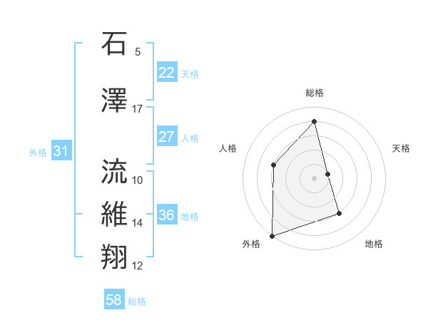 石澤 流維翔さんを姓名の画数から五運を鑑定
